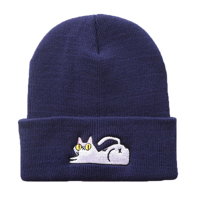 Cute Lazy Cat Embroidered Hip Hop Knitted Beanie