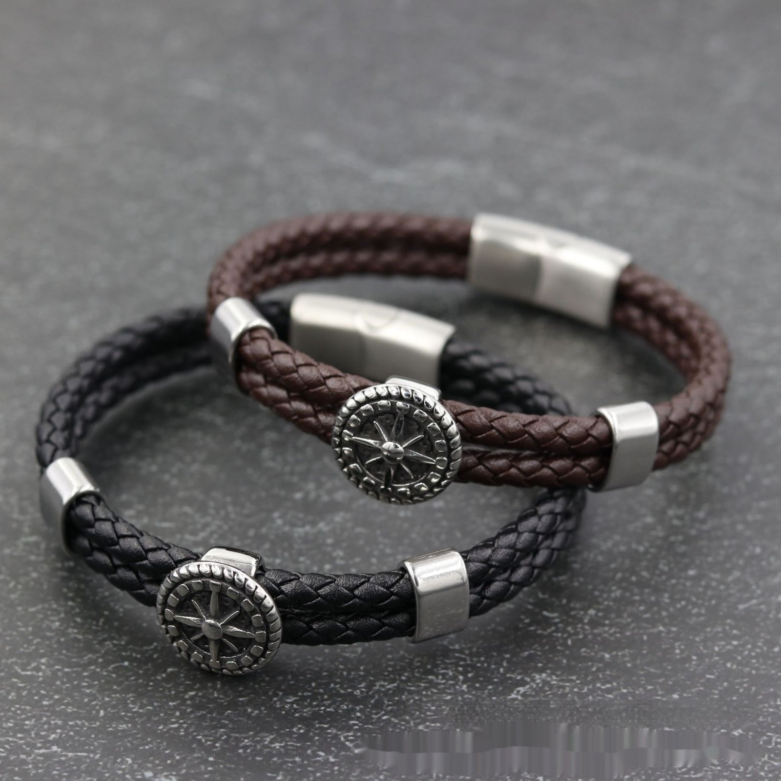 Titanium Steel Men's Leather Bracelet Double Layer