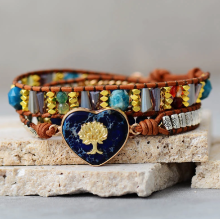Tree Of Life Spirit Heart Charm Leather Wrapped Bracelet